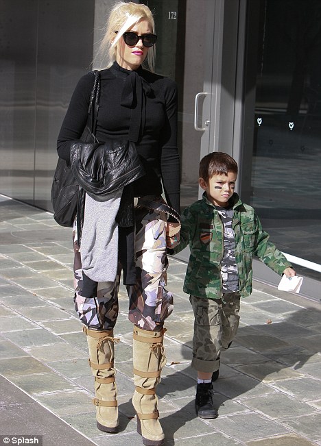 Gwen Stefani,42 year old and her five-year-old son Kingston Rossdale both wore army-style trousers as they went shopping in West Hollywood.